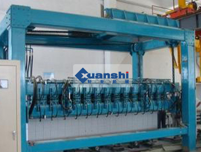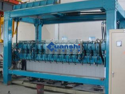 1.機型結構精簡實用,便于安裝維修; 2.坯體翻轉后直立使坯體寬度為600mm,高度為1200mm,這樣切割鋼絲使用更短,所以不易拉斷,不易漂移,切割精度高; 3.縱向切割裝置是固定的,坯體在切割小車上行走完成縱向切割。水平式橫切裝置采用鏈條傳動能保持橫切架升降傳動一致,保證切割精度; 4.坯體直立后兩側(600mm寬)可在坯體縱向切割,同時完成銑槽,不需要配置槽口加工設備; 5.本機型除生產砌塊外還生產板材,而且對坯體作六面切割,所以制品質量不受涂模油及模具變形影響; 6.設備操作簡單方便,該機型切割過程(翻轉、縱切、橫切)分別在不用工位完成,因此各工位工作得到簡化,操作保養方便。
