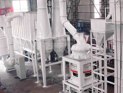 該 機工作原理與R系列雷蒙磨粉機相同。但在碾磨裝置中設置了高壓彈簧,使節(jié)磨輥與磨環(huán)之間碾壓力提高1.2倍。當磨輥與磨環(huán)達到一定磨損后,通過調(diào)整高壓彈 簧長度,使磨輥環(huán)之間保持恒定碾壓力,以保證質(zhì)量穩(wěn)定。同時在碾磨裝置中,各零部件經(jīng)過技術(shù)改進,使磨輥與磨環(huán)的接觸面積達到最大,避免了一般磨粉機中, 小顆粒物料在凹凸不平的縫隙中不能連續(xù)粉碎的現(xiàn)象。 根據(jù)氣體流動的柏努里方程計算及模擬實驗結(jié)果,改變了細度分級機中葉片的幾何形狀,重新調(diào)整了檔邊傾角與相對間隙,使進入分級中的超細粉能有效精確地被分 選出來。