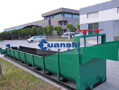 該產品適用于建筑工地、砂石廠、水電站混凝土大壩工地、郵電電桿廠需單位砂石及鑄造用“七0”砂、玻璃廠石英砂及油井回填用壓力砂的洗選、分級和脫水。砂石洗選機按15°傾斜布置,水槽下部由三邊堰板包圍形成沉淀池,螺旋頭部沒入沉淀池內,螺旋由電動機經減速器驅動連續旋轉,由沉淀池底部多孔板給入清洗水。該設備兼有清洗、脫水、分級三種功能。