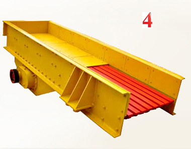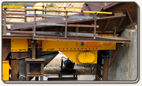 振動(dòng)給料機(jī)在工作過程中可把塊狀、顆粒狀物料從貯料倉(cāng)中均勻、定時(shí)、連續(xù)地送入受料裝置,在砂石生產(chǎn)線中可為破碎機(jī)械連續(xù)均勻地喂料,并對(duì)物料進(jìn)行粗篩分。